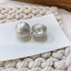 Modische Metall Gebürstet Mattierte Halbkreis Ohrstecker für Damen Vintage Goldfarben Runde Kugel Temperament Ohrringe Zirkonia Geschenk
