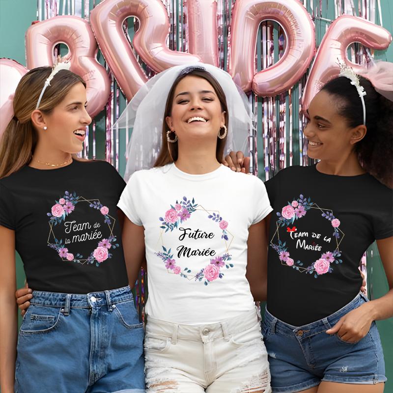 JGA Zukünftige Braut T-Shirt Braut Hochzeit Team Braut Brautjungfer Oberteile Frauen Junggesellinnenabschied Shirt Blumenkranz Grafik T-Shirts