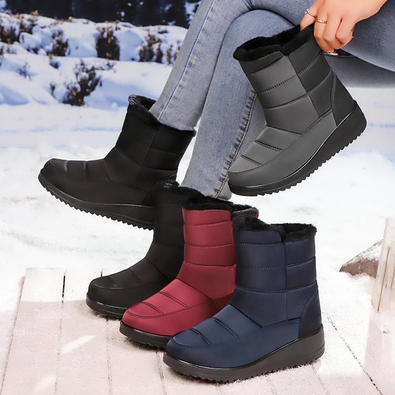 Damen gefütterte warme Schneestiefel High Top bequem dicke Sohle Dämpfung weich elastisch bequem wasserdicht rutschfest dämpfend Baumwollschuhe