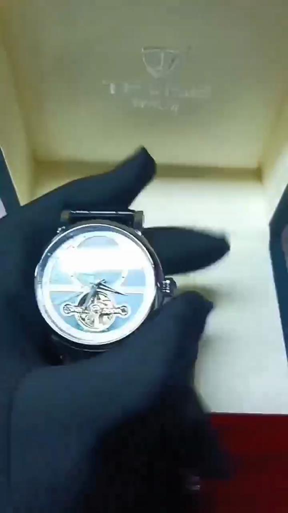 TEVISE Tourbillon Uhr Leuchtend Mechanisch Skelett Herren Armbanduhr Wasserdicht Echtes Leder Uhr