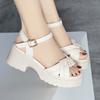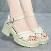 5cm All Match Bequeme Dicke Sohle Mittelhohe Blockabsätze Schuhe Plateau-Sandalen 2025 Sommer Damen Ledersandalen Büro Mädchen