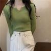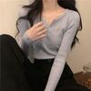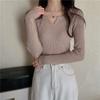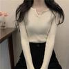 Slim-fit V-neck Knit Base Layer Top for Women Long-sleeve Solid Color Top Autumn/Winter Inner Sweater
