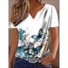 Sommer neues Damen-T-Shirt 3D wunderschöner Schmetterlingsdruck V-Ausschnitt Kurzarmshirt Mode Damen-T-Shirt
