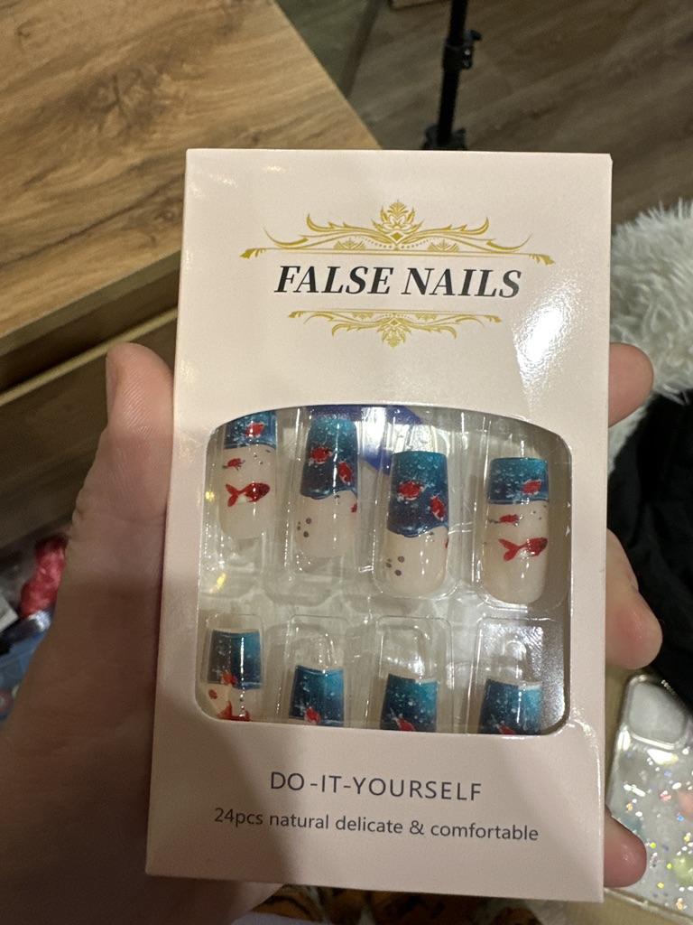 24 Stück Abnehmbare Quadratische Glas Tragbare Nägel mit Unterwasser-Goldfisch-Elementen