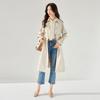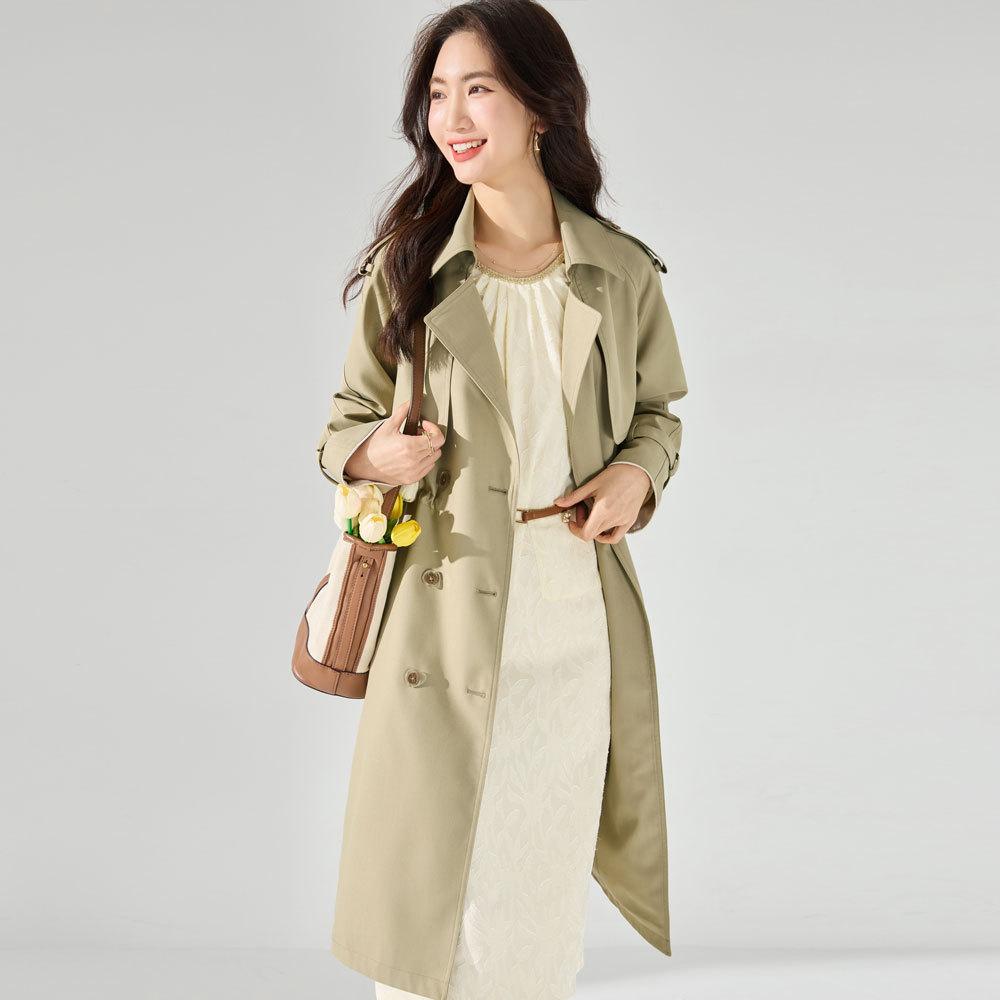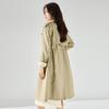 Classic shoulder plug thin cotton drawstring waist medium and long lapel temperament elegant crisp trench coat 23227