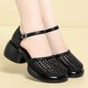 6cm Runde Spitze Ausschnitt Schuhe Echtes Leder Sandalen Sommer 2025 Damen Mittelhohe Blockabsätze Sandalen für Büro Mutter Arbeit Alltag