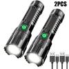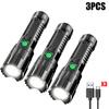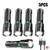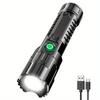 Portable LED Strong Light Flashlight Built-in Battery USB Rechargeable Telescopic Zoom Torch Outdoor Camping Hiking Cycling Lamp