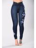 Damen Low-Waist Ripped Bestickte Jeans