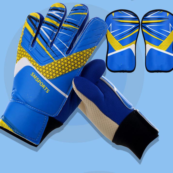Kinder Fußball Torwart Ausrüstung Set: Latex Handgelenkstützhandschuhe & Schienbeinschützer