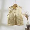 Spring and summer new temperament woven gold jacquard vest retro zen simple stand-up collar disc buckle women's vest