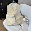 2025 Jacquard stand-up collar buckle sleeveless vest women's early spring temperament versatile vest