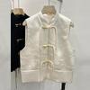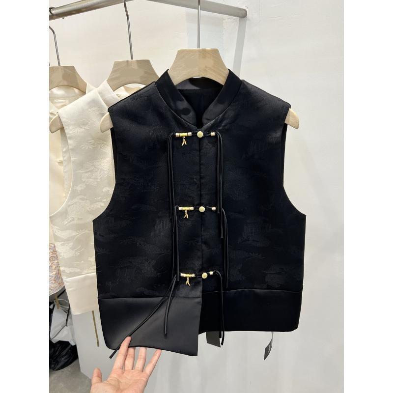 Outside the 2025 spring new stand-up collar buckle sleeveless retro jacquard vest