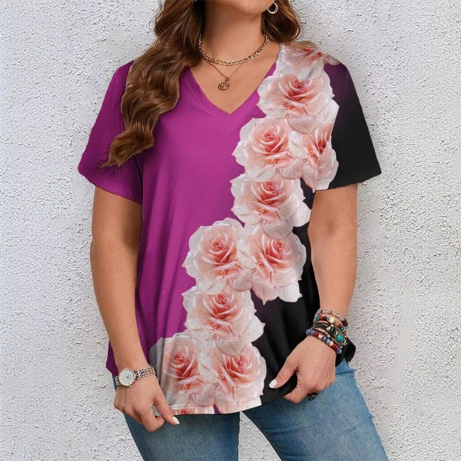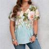 Lässiger Vielseitiger Modetrend Hochwertiges Blumenmuster Kurzärmeliges V-Ausschnitt T-Shirt