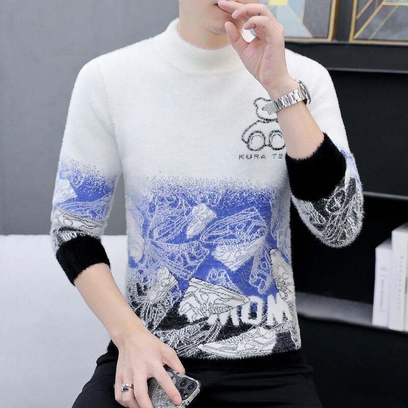 Hot Selling Explosive Autumn and Winter New Casual Semi-Turtleneck Men's Bottom Knitted Knitwear