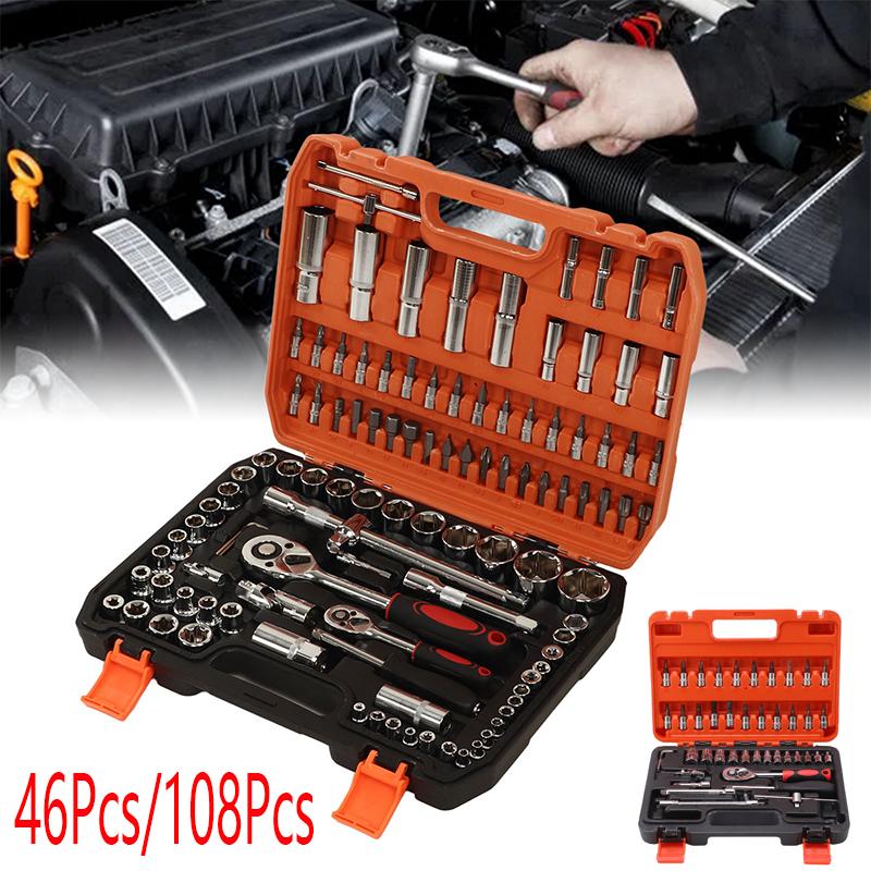 46-teiliges Steckschlüssel-Schraubenschlüssel-Set 1/4" Antrieb metrisch Verlängerungsstange mit Kasten