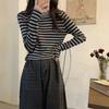 Versatile Round Neck Striped Slim Fit Short Long Sleeve Top Autumn Fashion Versatile Base Layer Women's