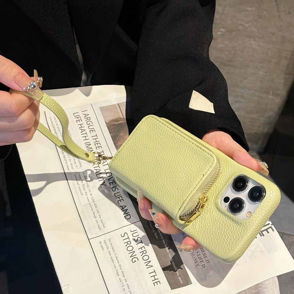 Für iPhone 15 Pro Hülle Reißverschluss Kartenfächer PU Leder Handy Rückseite mit Handschlaufe