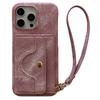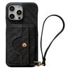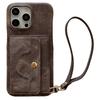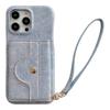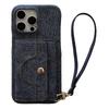 For iPhone 15 Pro Max Case Card Slots Mirror Design Jeans Cloth Texture PU Leather Back Cover with Strap
