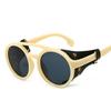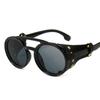 Retro Punk Round Frame Sunglasses with Leather Case for Men and Women - European and American Style Driving Shades
