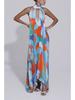 Sommer Neckholder Tiefes V Rückenfrei Ärmellos Floral Plissiertes Schwingkleid