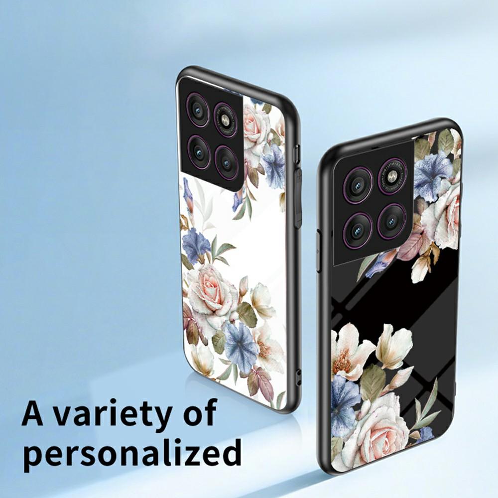 Für Motorola Edge 60 Pro 5G Hülle Blumenmuster TPU+Gehärtetes Glas Schutzhülle