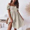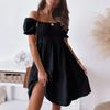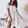 Sommer-Damenkleid mit kurzen Ärmeln, einer Schulter, Taille umspielend, Rüschenbündchen, einfarbig, Party-Resort-Kleid