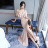 Umarme Raffinesse und Stil mit diesem atemberaubenden schulterfreien Kleid, das zarte Rüschenärmel und elegante Spaghettiträger aufweist.. Gefertigt aus hochwertigem Polyester, besticht das Kleid durch einen schmeichelhaften V-Ausschnitt und eine schicke hohe Taille.. Die kurzen Ärmel verleihen eine verspielte Note, während die gerafften Details das exquisite Design des Kleides unterstreichen.. Ein gewagter hoher Schlitz vervollständigt den Look, perfekt für einen anmutigen Auftritt bei jeder besonderen Gelegenheit.