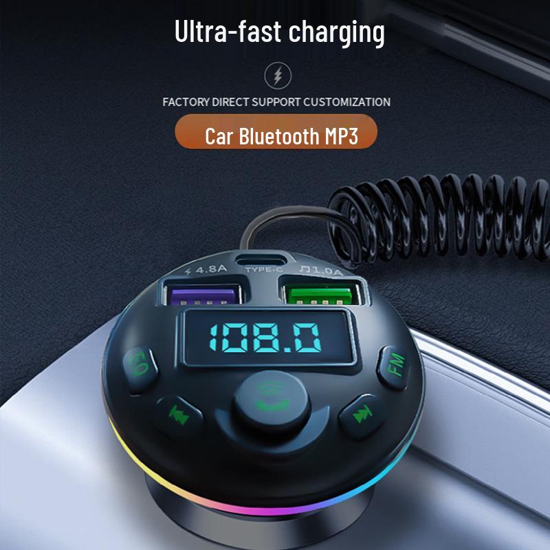 Q21 Bluetooth FM Transmitter mit Spiralkabel & QC3.0 PD20W Schnell-Autoladegerät