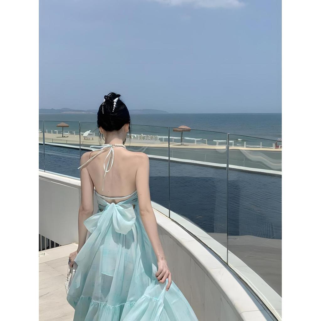 Französisches Neckholder-Kleid Foto weiblich Sommer hoher Sinn Temperament Strandurlaub Fee langes Kleid