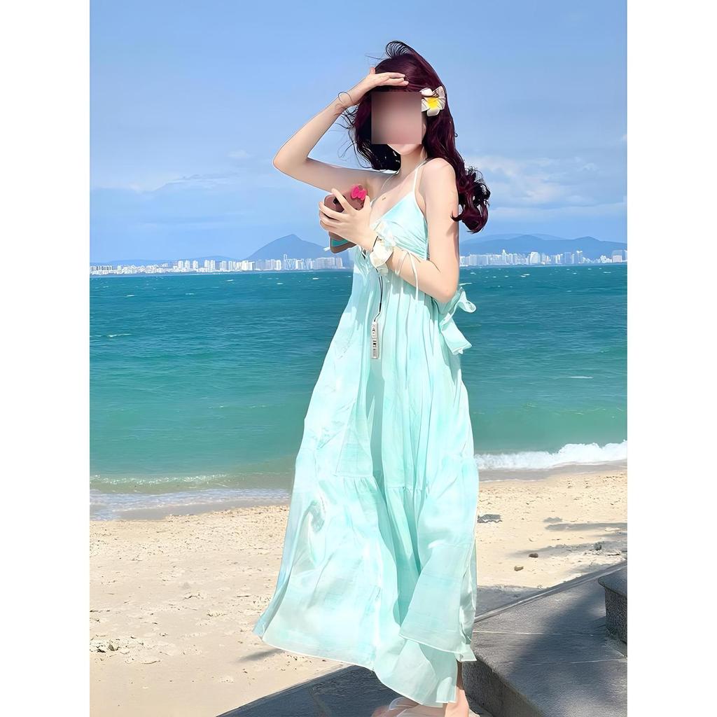 Französisches Neckholder-Kleid Damen Sommer Dopamin Strandurlaub Feenkleid Sanft rückenfrei Großes Swingkleid