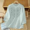 Summer new retro ethnic style cotton and linen literary embroidery loose half-sleeved shirt stand-up collar loose women