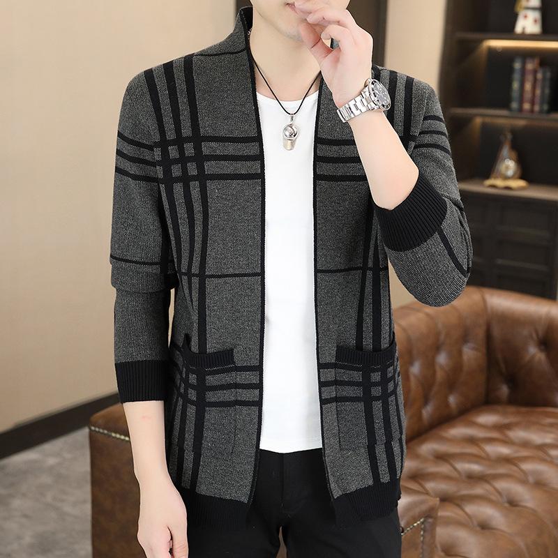 Hot Sale, Men's Long Sleeve Knitted Sweater Plaid Cardigan Youth Fashion Casual Sweater Jacket