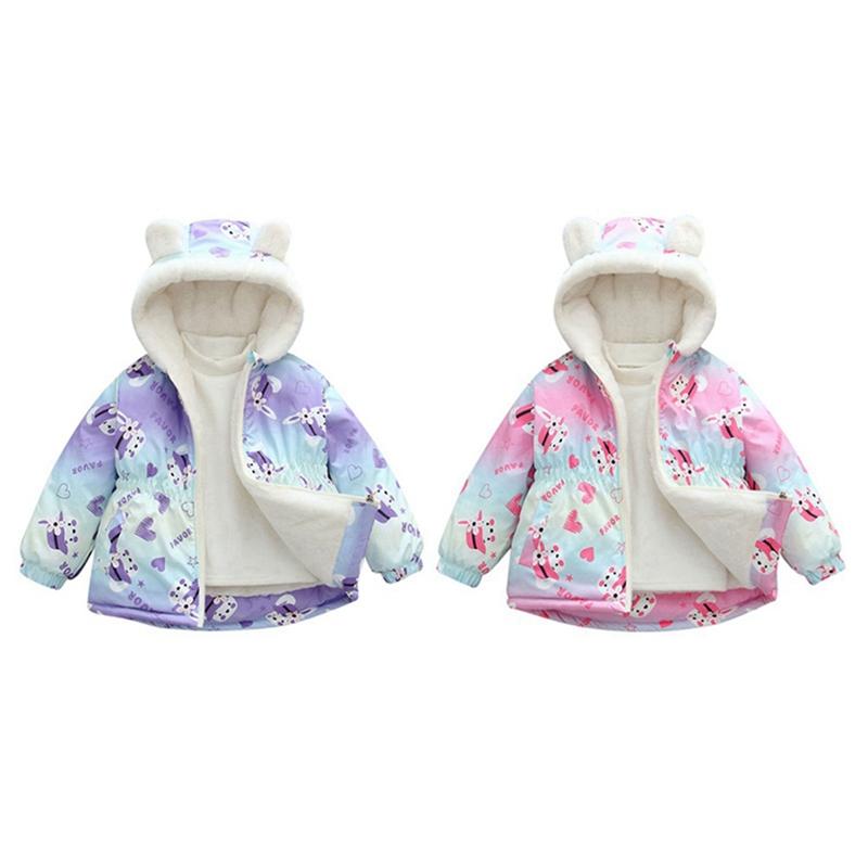 2-10 Jahre Kinder Mädchen Warmer Kapuzenmantel Winter Winddicht Reißverschluss Fleecejacke