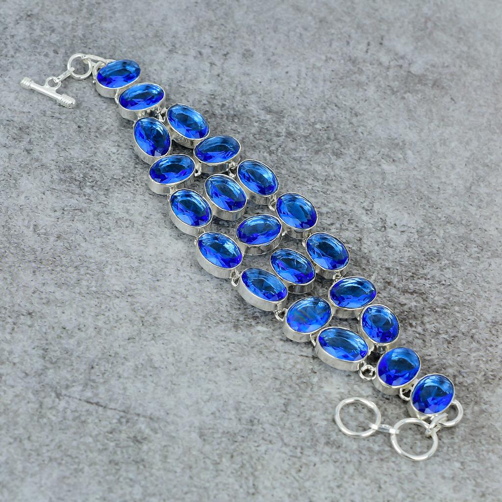 Tanzanite Quartz Gemstone Handmade 925 Sterling Silver Bracelet 7-8" M-300