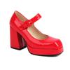 Übergröße Vichy Glänzendes Lackleder Material Flache Runde Schnalle Damen Pumps Eckige Zehenpartie Plateau Dicker Absatz High Heels
