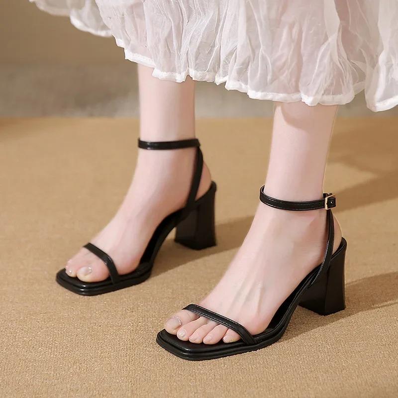 Damensandalen mit hohem Absatz in großer Größe, elegant, bequem, mit dickem Absatz, offenem Zeh, Römerschuhe, Damen-Sommerschuhe, Übergröße 43
