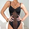 Sexy V-Ausschnitt Rückenfrei Mesh Patchwork Sommer Figurformendes Einteiliges Oberteil für Damen
