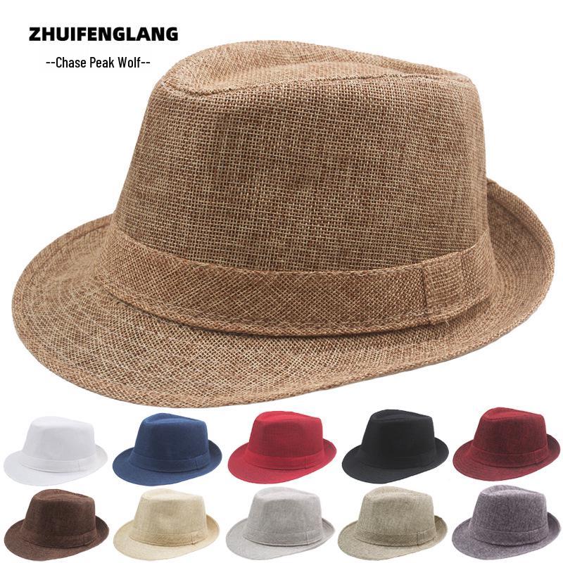 Retro Summer Linen Fedora Jazz Hat with Roll-Brim for Outdoor Sun Protection
