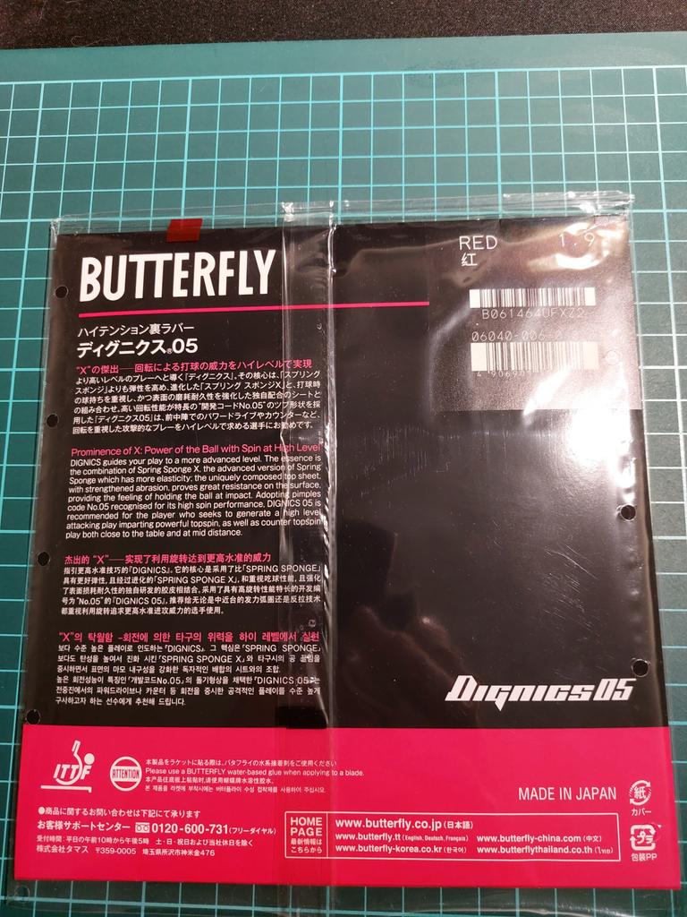 TAMASU Butterfly Tischtennisbelag Dignics 05 Hohe Spannung Rückhand Weich 06040 Rot Dick