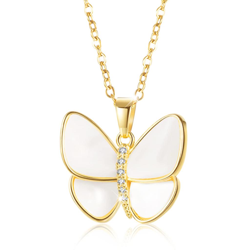[Produktdetails] Die Damenhalskette ist aus Edelstahl gefertigt, der anlaufbeständig und hypoallergen ist, sodass Sie sie bedenkenlos tragen können. Halskette Material: Weißes Perlmutt, Zirkonia, 3 Schichten 18K Vergoldung, Edelstahl. Butterfly Anhänger Größe: 18,5*16mm, Kettenlänge: 410mm+60cm (Verlängerungskette). Gewicht: 4,5 g.