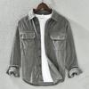 Frühling Neuer Stil Gestreiftes Langarmhemd Doppeltasche Locker Lässig Cordhemd Jacke