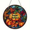 2d Flach 20*20cm, Herbstdekoration, Hallo Herbst, Herbsternte Ahornblätter Kürbis Hölzernes Kreisförmiges Logo, für Zuhause, Café, Schlafzimmer, Büro Wanddeko