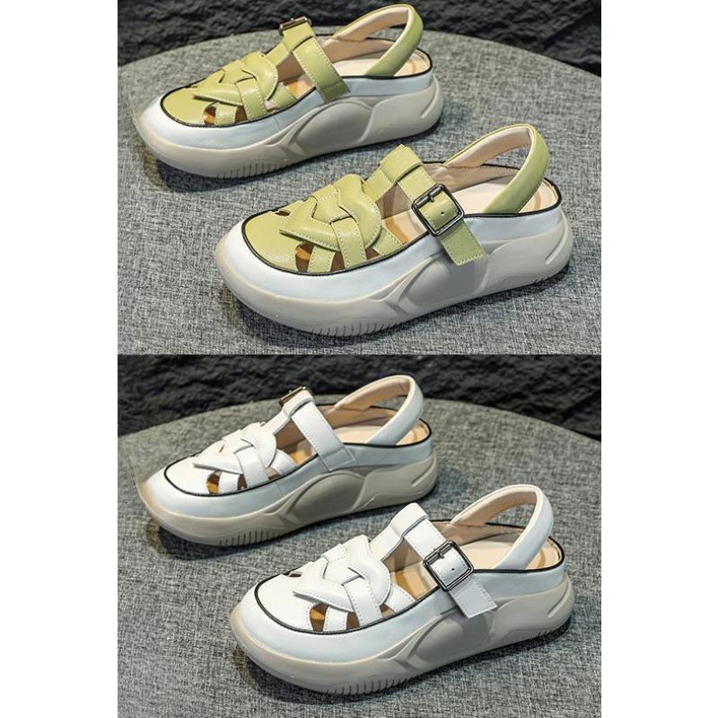 Neue Flache Sandalen Lässig Schnalle Weiches Leder Bequeme Mama Schuhe