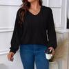 Herbst Winter Einfarbig Übergröße Damen Oberteil V-Ausschnitt Kapuze Langarm Gerillt Gebürstetes T-Shirt Locker geschnittenes Hemd