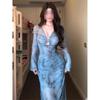 Reine Begierde Badeurlaub wunderschönes langes Kleid tiefer V-Ausschnitt Temperament Langarmkleid