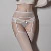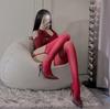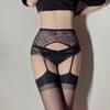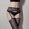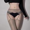 Ultra-Dünne 20D Ölig Glänzende Schwarze Strapsstrümpfe mit Integrierter Spitze und Perlmutartigem Ausschnittdesign