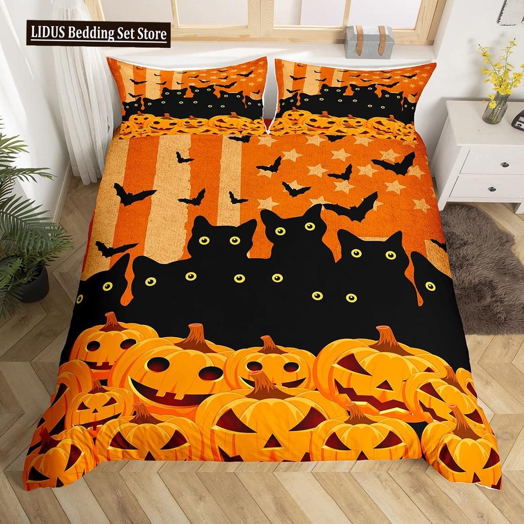 Halloween Bettbezug Cartoon Kürbislaterne Bettwäsche Geist Steppdeckenbezug Kinder Jungen Mädchen Halloween Geschenk Raumdeko 3-teilige Bettwäsche