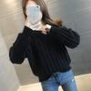 Temperament simple style solid color round neck lantern sleeve sweater spring and autumn fashion outer wear knitted bottoming shirt women's
