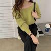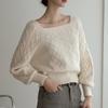 Lantern sleeve top women's spring and autumn literary style French twisted knitted sweater short niche temperament high sense