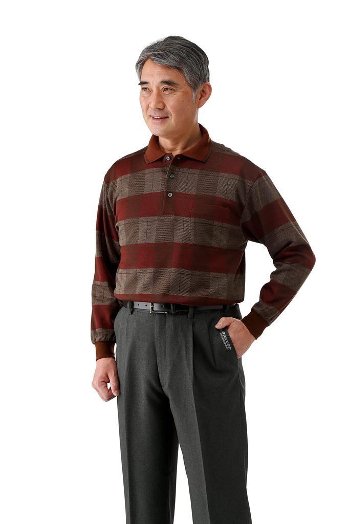 Wollmischungspolo M inländisch lang mit für M Bordeaux [Little Island] in Japan gefertigtes Hemd, Größe, Herren, hergestellt, Jacquard, Wolle, Ärmel, Kragen,